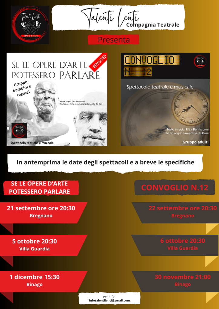 Eccoci all’uscita delle date dei due spettacoli: Se le Opere d’Arte Potessero Parlare Revisited e Convoglio n.12.