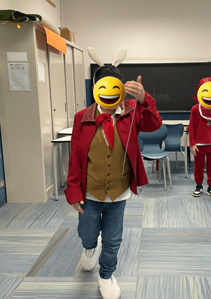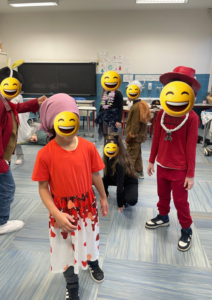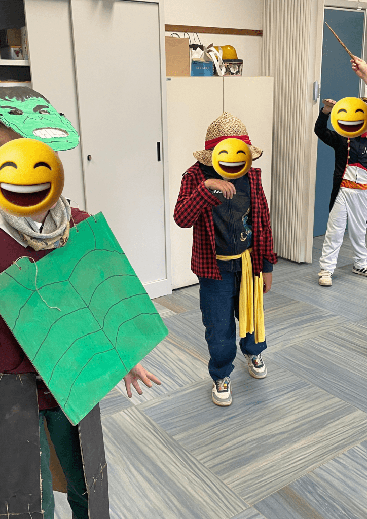 Perché parlo di autostima? Perché, come mi capita, ormai da anni, quando intraprendiamo questi percorsi sono i bambini più fragili ad emergere, quelli che utilizzano strategie diverse per apprendere ed è proprio lì, in quel lavoro, apparentemente banale, che fioriscono e sbocciano. Vogliamo poi parlare delle idee fantastiche che i bambini portano per ricreare i loro personaggi: oggetti creati appositamente, alcuni cuciti da loro stessi, altri ricercati: mi sono capitate anche calze della mamma tagliate per creare il costume!😅 perdonatemi genitori! Qualcuno ha raccolto ramoscelli per ricreare il personaggio di un albero letto in un testo di italiano: fantastici!